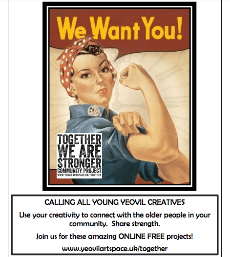 Artist Natasha Rand and creative tutor Kara Bignell-Bird designed the following activity especially for those in Years 7 -11 (Aged 14-18) as part of Together We Are Stronger, aiming to share and bring forward the voices from our teens. Enjoy the activity at home and in your own time, or as you wish to enter your poster art or creative writing piece to be exhibited at Yeovil Art Space.