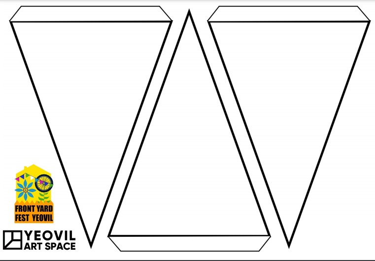 There are many ways to make bunting, so we have put together video, template and guides from our artists, so you can make one at home, and to contribute to our challenge to Bunting Bomb the Quedam as part of Front Yard Fest Yeovil.