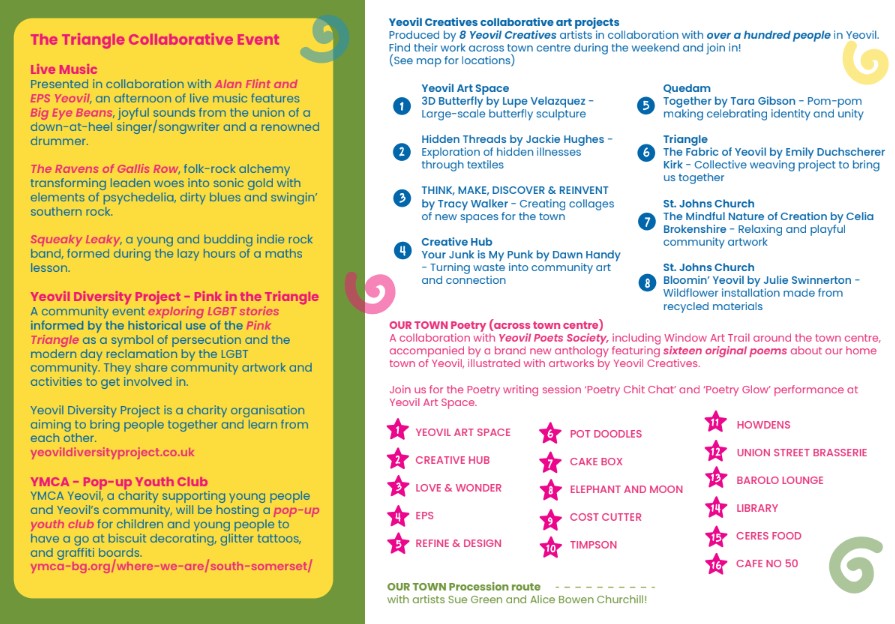 Yeovil Art Weekender was developed as part of Yeovil Art Space’s project ‘Our Town’ a creative placemaking project funded by Arts Council England, offering a programme of art and cultural events for Yeovil Town Centre from now until March 2026.
