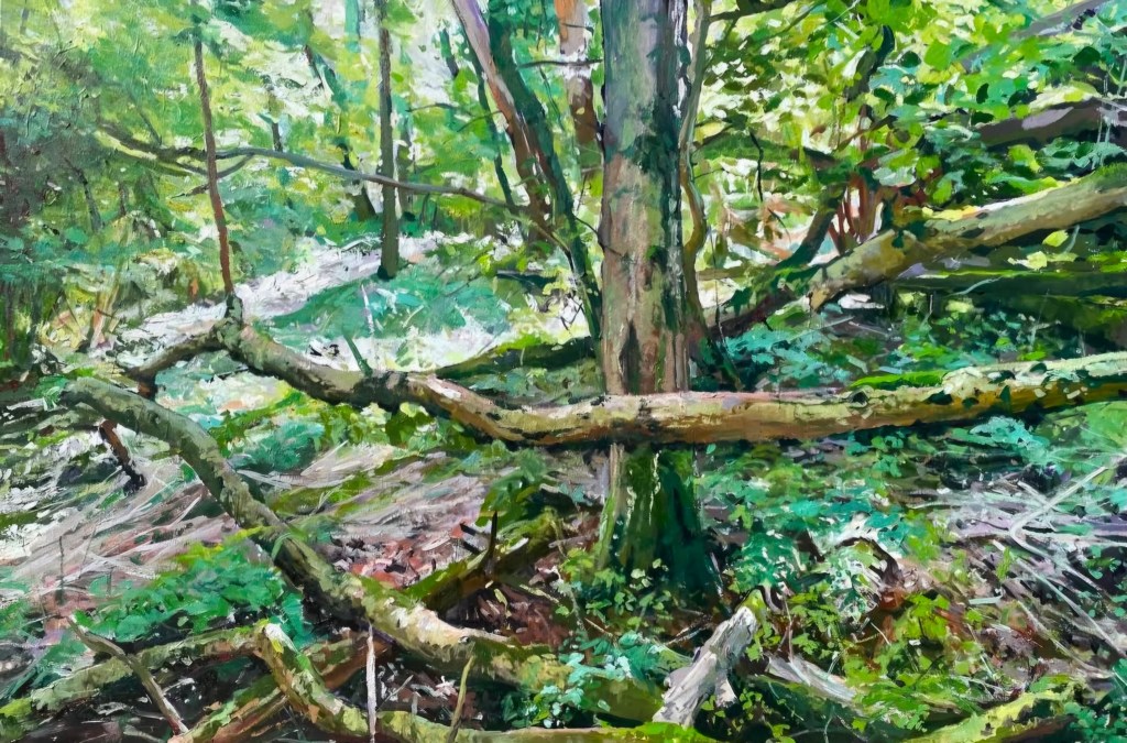 Over the last four years, artist Andy Rollo has immersed himself in the landscape and woodland of Dorset near his home. He has created a new body of work on what he considered to be unassuming, almost incidental subjects; the complexity of moss clad trees, the quality of light falling on the woodland floor and abstract shapes and forms.