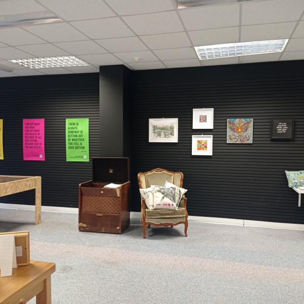 An installation designed with the quotes from the podcast has been installed at 96 High Street, the former St Margaret’s Hospice Charity Shop. Part of Window Art Trail by Love Yeovil.