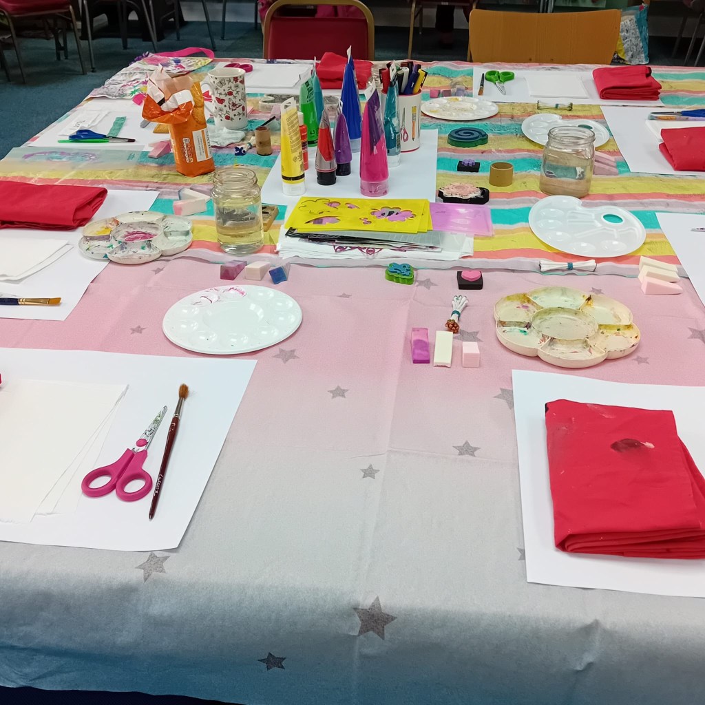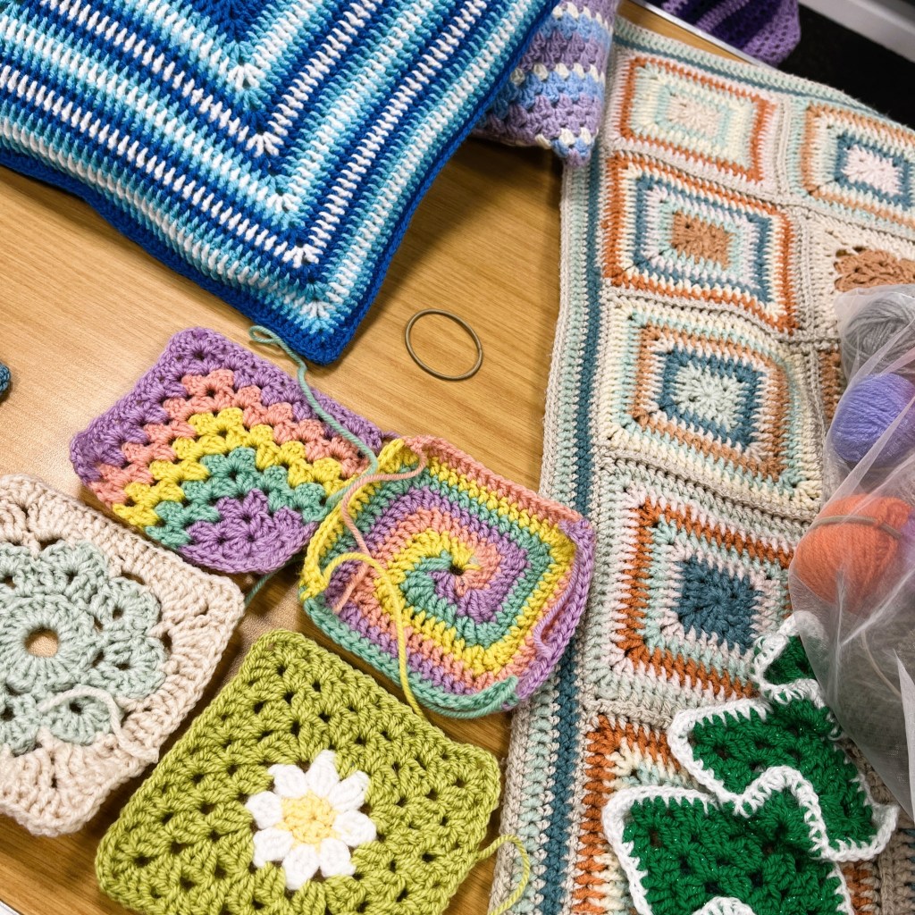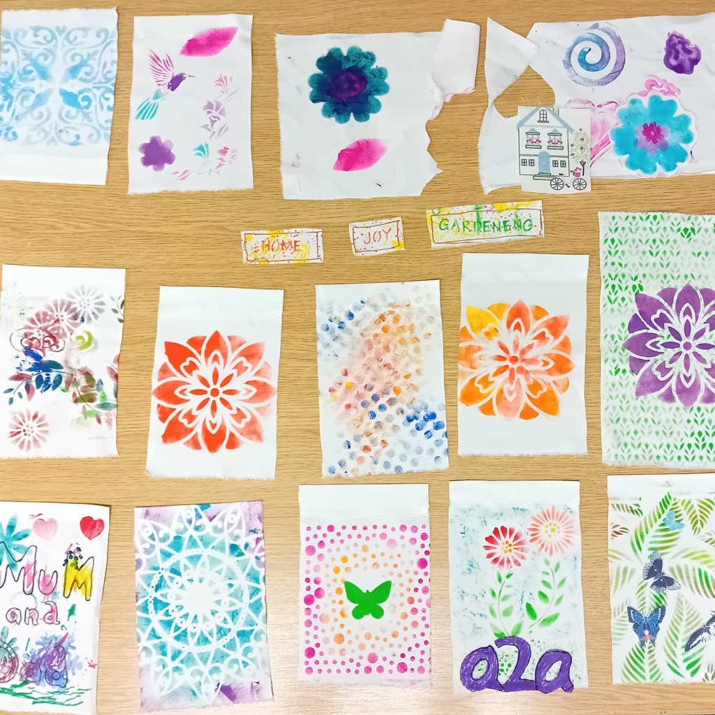 Textile Artist and Crafter, Steph Baker, joined the Welcome Hub group, working with some Ukrainian families who are supported by Yeovil4Family, They have learned to crochet granny squares, had a go at Indian block printing, and made felt.