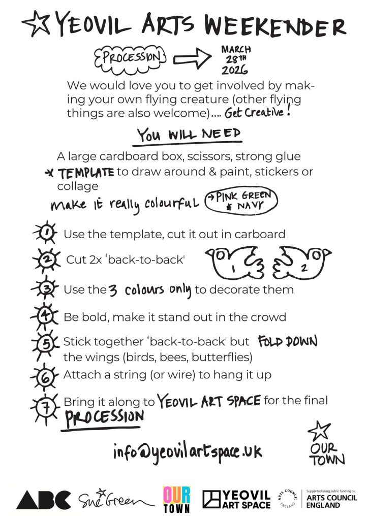 On Saturday 28 March, Sue and Alice will be leading a BIG procession through Yeovil town centre! They have been very busy with all of you making flags, banners and costumes but there are still ways you can bring your creativity to the procession.