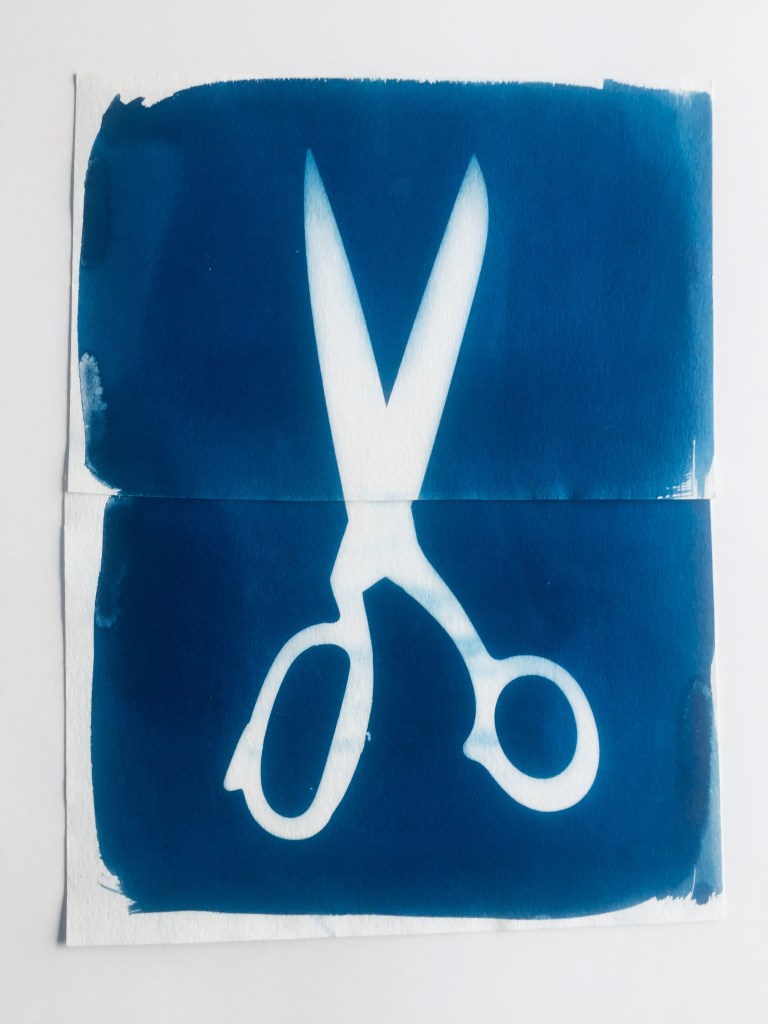 Cyanotype prints is a low-tech and very early form of photography using a chemical reaction with UV light to produce a distinct image characterised by dark indigo blue background. Photograms are produced by objects, rather than negatives (as in conventional photography) to create a ghostly white silhouette.